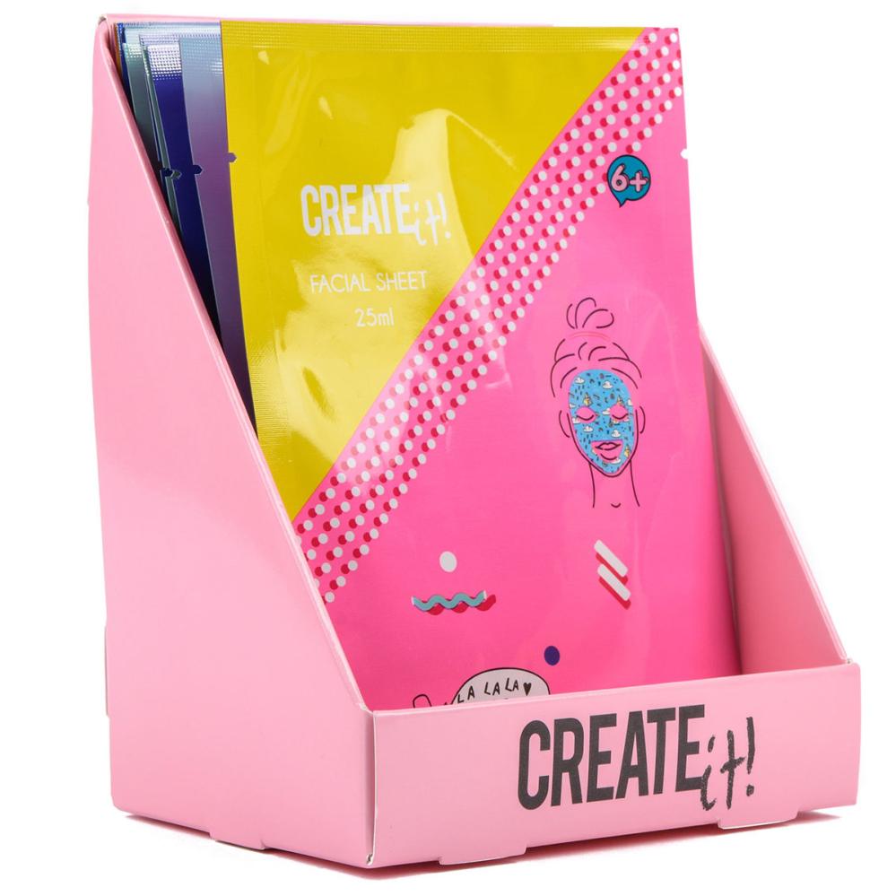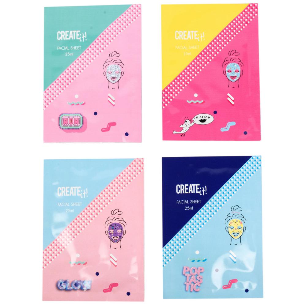 Giv huden nyt liv med en sjov facial sheet mask fra Create It! Hver fugtgivende ansigtsmaske har et farverigt motiv og sælges stykvis som en spændende overraskelse. En fugtgivende ansigtsmaske med et ekstra sjovt udseende.