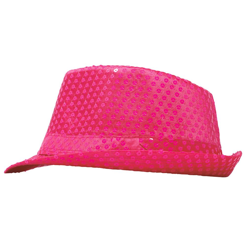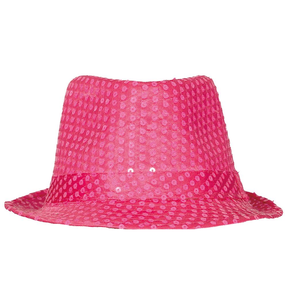 Info om Gangsterhat med Pailletter Neonpink: