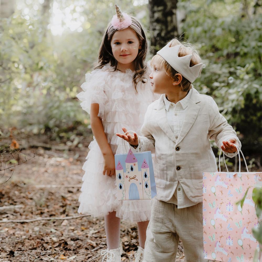 Børnene sætter pris på en gavepose med motiv af et slot, især når den passer perfekt til prins og prinsessefester, hvor fantasifulde lege får plads. Ved en prinsessefest bliver temaet komplet med den rette gavepose. Dette tilbehør passer også udmærket, når festen ønsker et klassisk prinsessetema.