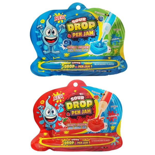 Geléslik og Pen med Gel 55g er en pen med sur gel på 15 gram, som påføres de medfølgende geléslik på 40 gram med jordbær eller blåbærsmag.