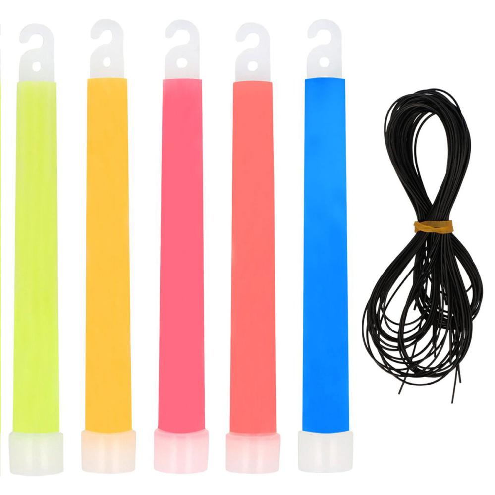 Glowsticks Lysstave Farvemix 10-pak omfatter ti glowsticks, to af hver i farverne blå, gul, grøn, rosa og orange. Hver glowstick har en løkke foroven og med den medfølgende sorte snor kan du nemt bære dem som halskæde. Aktiver ved at bøje, knække og ryste glowsticken indtil den lyser.