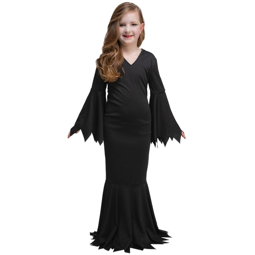 Forvandl dit barn til Halloween-festens mystiske midtpunkt med dette gotiske pige kostume. Perfekt som heksekostume til børn eller Morticia Addams kostume, med sin elegante sorte kjole som Halloween aldrig glemmer.