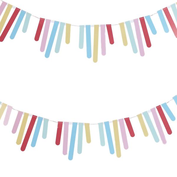 Guirlande med Fringe Mix It Up Brights omfatter en flerfarvet guirlande med dekorative frynser. Guirlanden er lavet af pap og er cirka 3 meter lang.