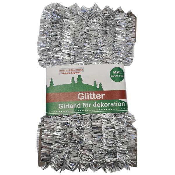 Forvandl dit hjem til en vinterdrøm med vores skinnende sølv glitter juleguirlande. Denne sølv juletræsglitter giver et festligt element, der forener tradition med et strejf af moderne elegance. Ideel sølv glitter guirlande for dem, der værdsætter diskret glamour i højtiden.