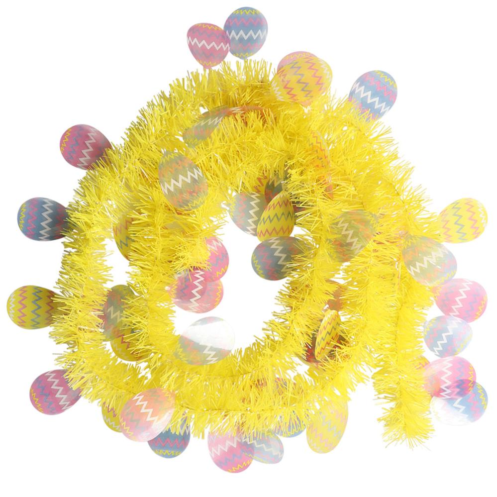 Guirlande Påske 2 m omfatter en gul påskeguirlande der er dekoreret med ægdetaljer i forskellige farver. Gennem guirlanden løber desuden en tynd metaltråd der gør den nem at forme præcis som du vil.