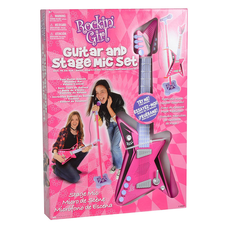 Bliv en super sej rockstjerne med denne seje legetøjs guitar og legetøjs mikrofon! Spil seje rock-lyde med guitaren og syng med i musikken med mikrofonen. Super sej legetøjs guitar og legetøjs mikrofon, der gør dig mere end klar til at starte din helt egen rockkoncert!