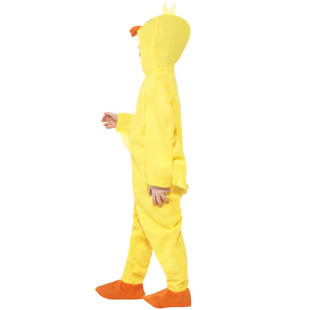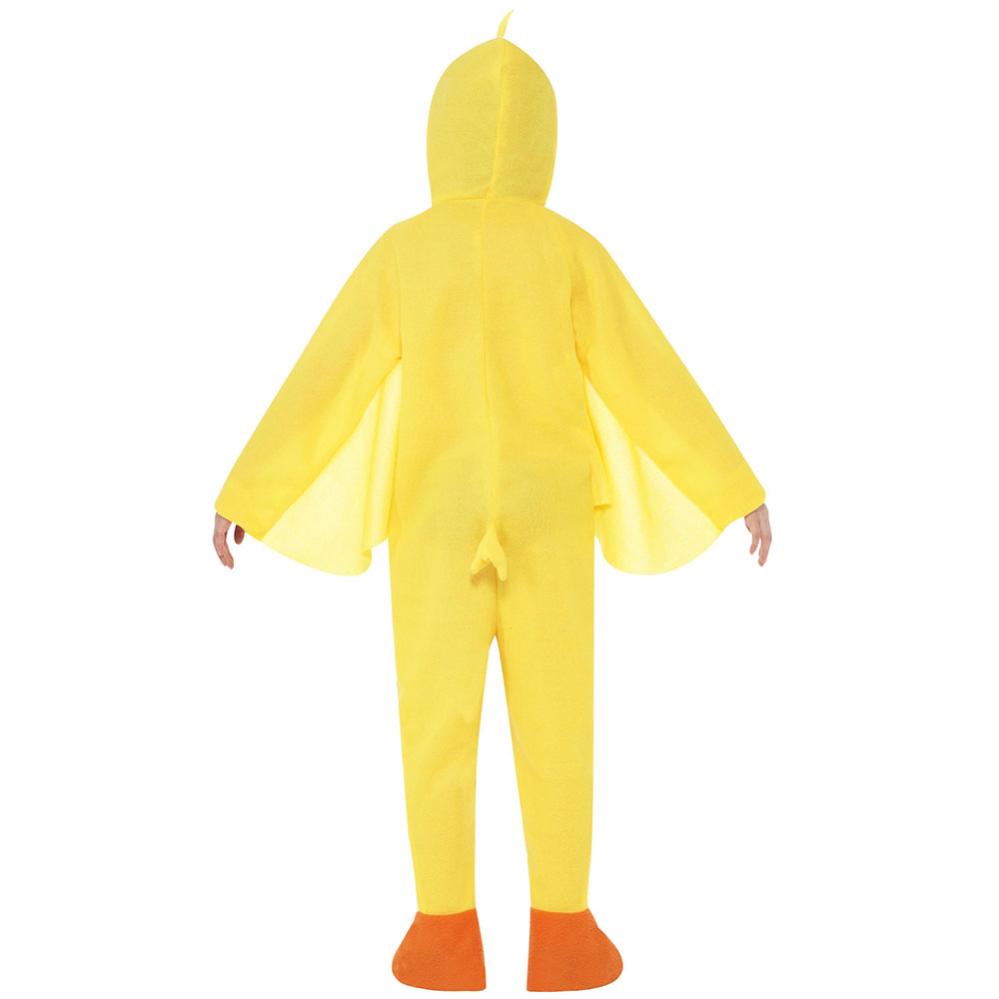 Gul And Kostume Børn omfatter et børnekostume, der forestiller en gul and med orange fødder. Dragten består af en jumpsuit med hætte.