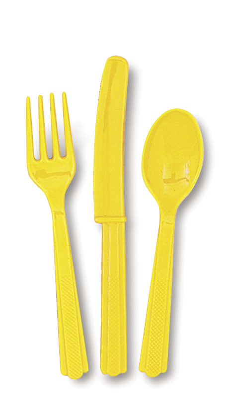 Det behøver ikke at være påske for at have gule plastikbestik, det kan være nok til at pifte måltidet eller picnicen lidt op! Skab en rigtig karnevalsstemning eller brug dem til påskelunchen!