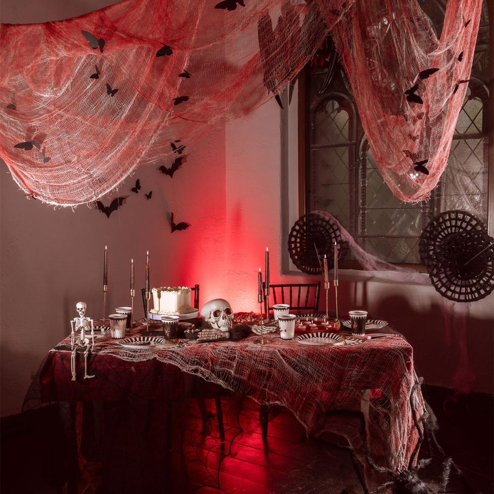 En hængende dekoration, der ligner et edderkoppespind, bidrager til en hyggelig og uhyggelig stemning til halloween. Til halloweenfesten bliver stemningen komplet, når denne detaljerede dekoration får sin naturlige plads i loftet eller i et hjørne.