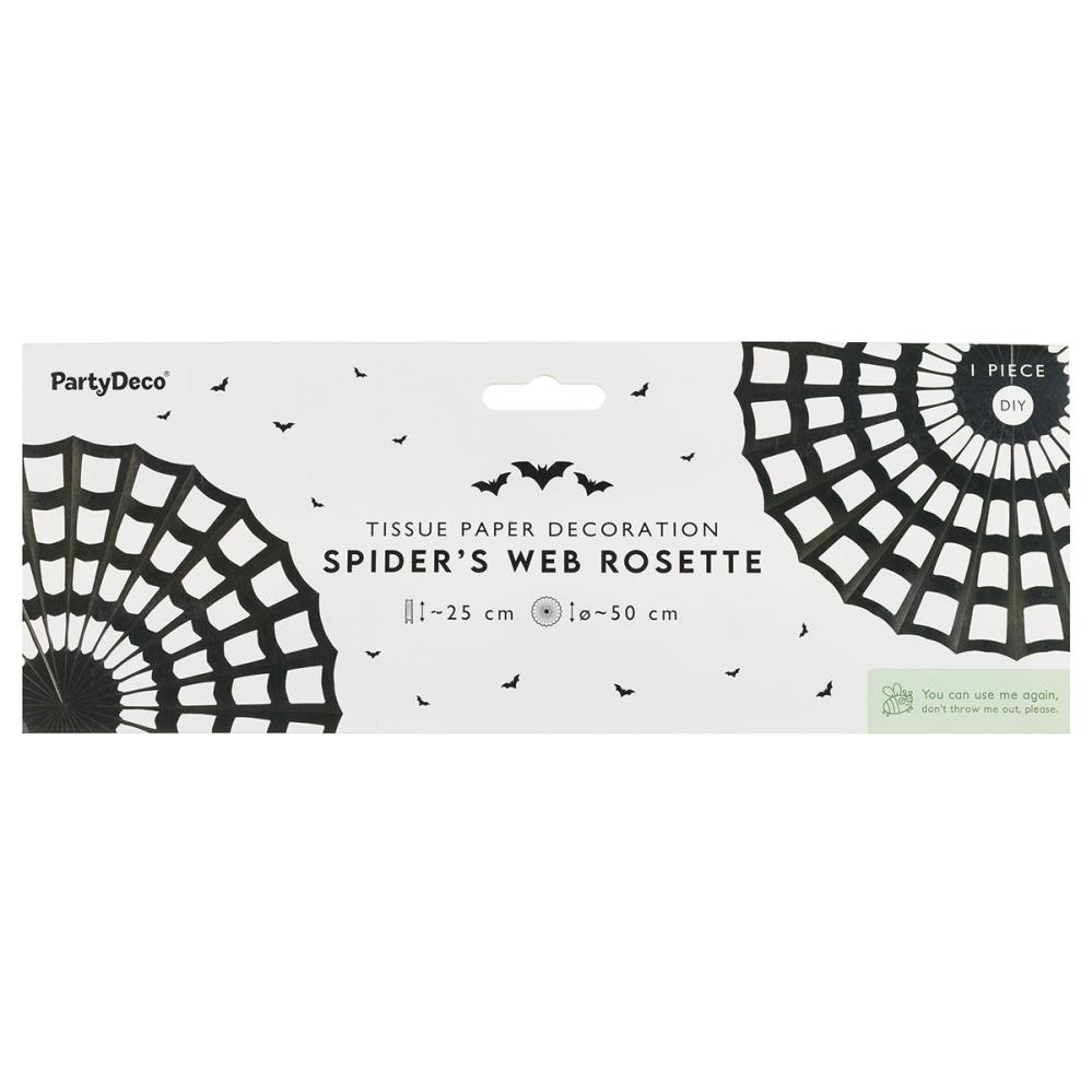 Hængende Dekoration Edderkoppespind Sort omfatter en papirdekoration i form af et sort edderkoppespind med tre klemmer til nem montering og en snor til ophængning.