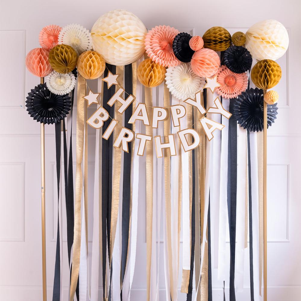 Som en hængende dekoration spreder denne gule honeycomb af papir sin charme uanset om den bruges som studentdekoration eller midsommerdekoration. En dekoration i form af en papirkugle passer lige så fint i festlokalet som til studenterfejringen.