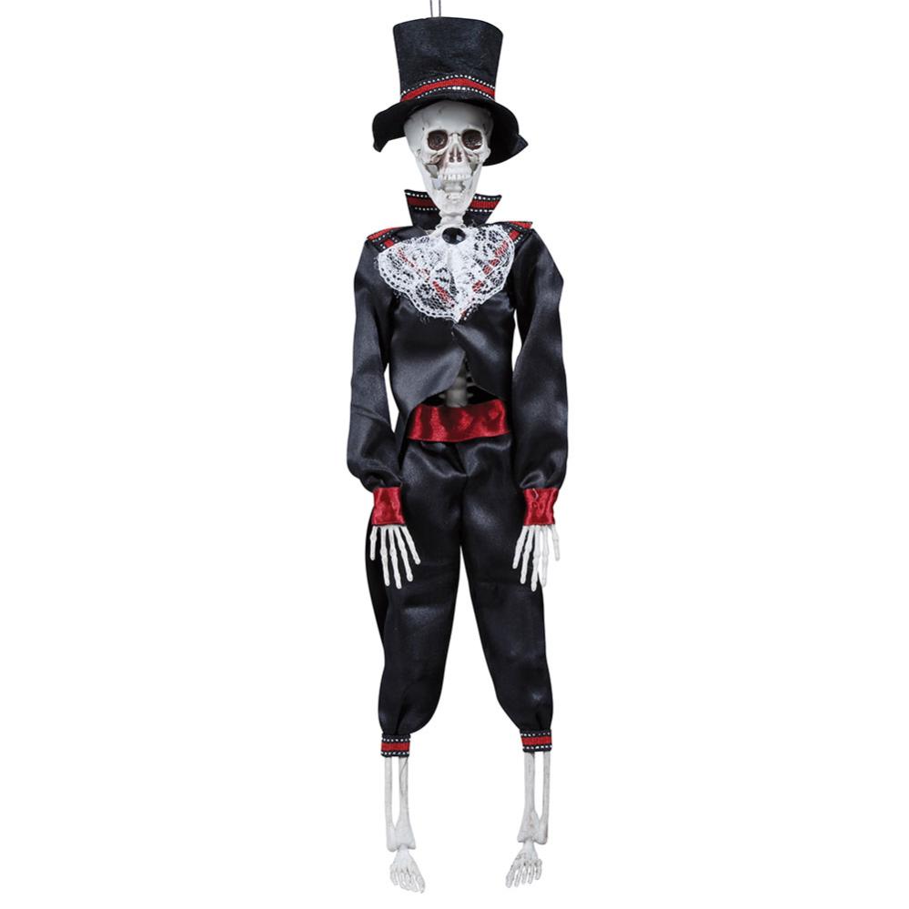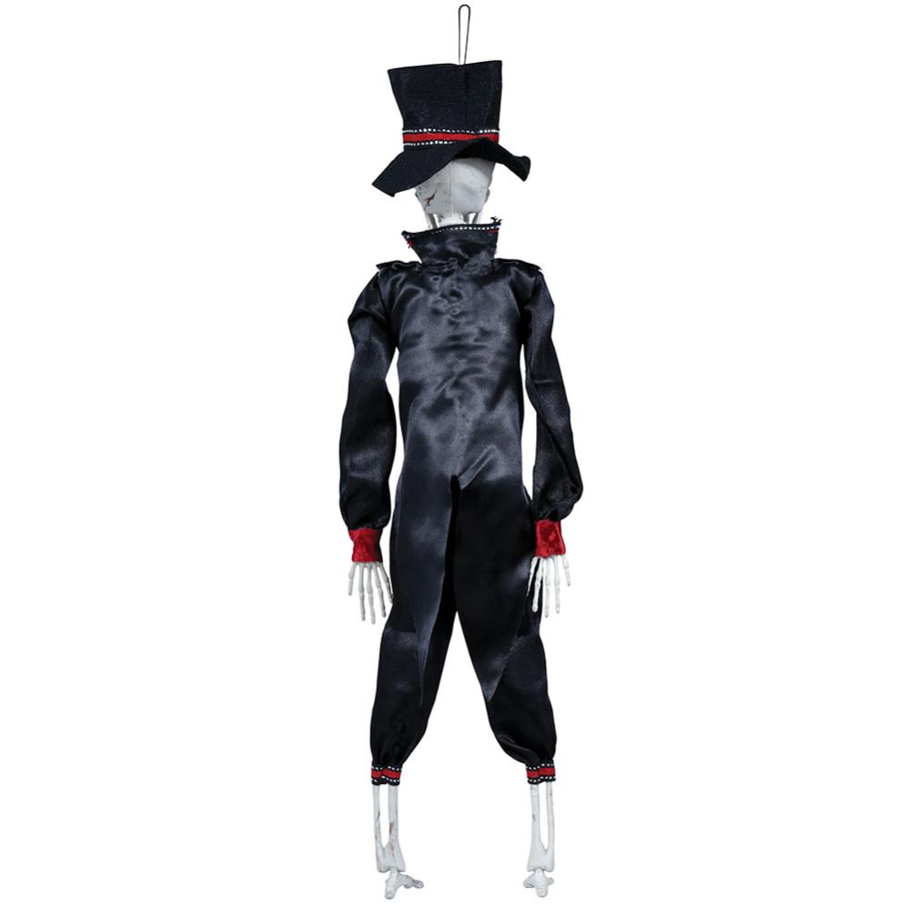 Dekorer dit hjem med en hængende Halloween-dekoration; dette skelet, klædt i et kostume og hat, er perfekt til at skabe den rette stemning. Denne unikke hængende dekoration vil garanteret imponere dine gæster.