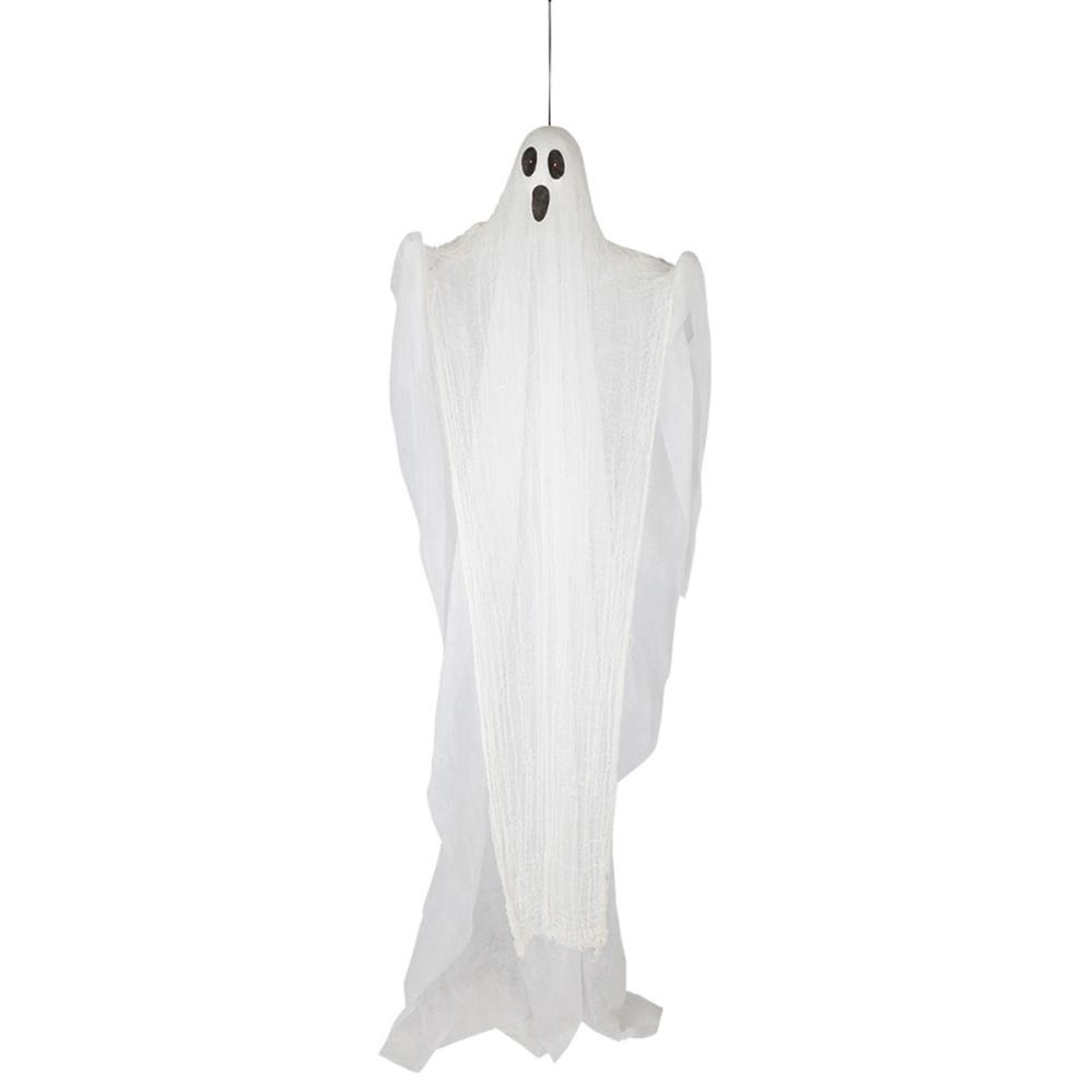 Hængende Spøgelse med Lys 215 cm omfatter en hængende dekoration i form af et stort hvidt spøgelse med indbygget belysning som lyser op.