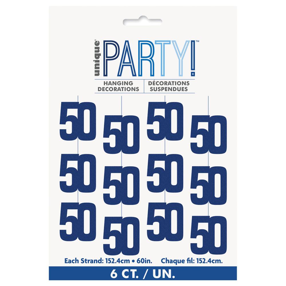 Hængende Tal 50 Holografisk Blå 6-pak
