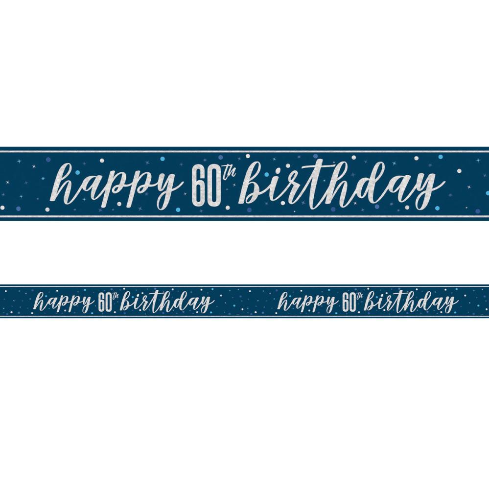 Happy 60th Birthday Banner Blåt & Sølv