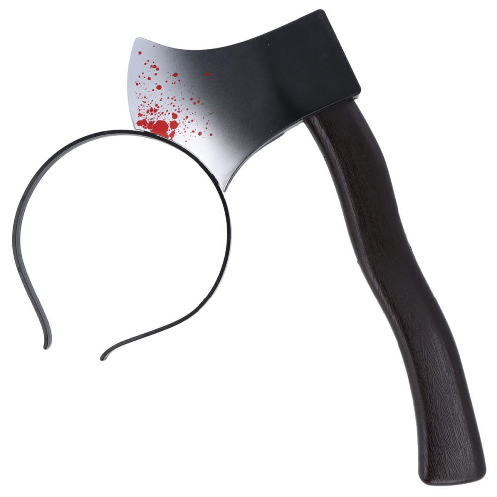 Op til halloween bliver udklædningsfesten mere effektfuld med en hårbøjle, hvor en økse ser ud til at trænge gennem hovedet. Det lette tilbehør sidder stabilt, er behageligt at have på og matches med fakeblod eller mørkt tøj for en stærk effekt på fotos.