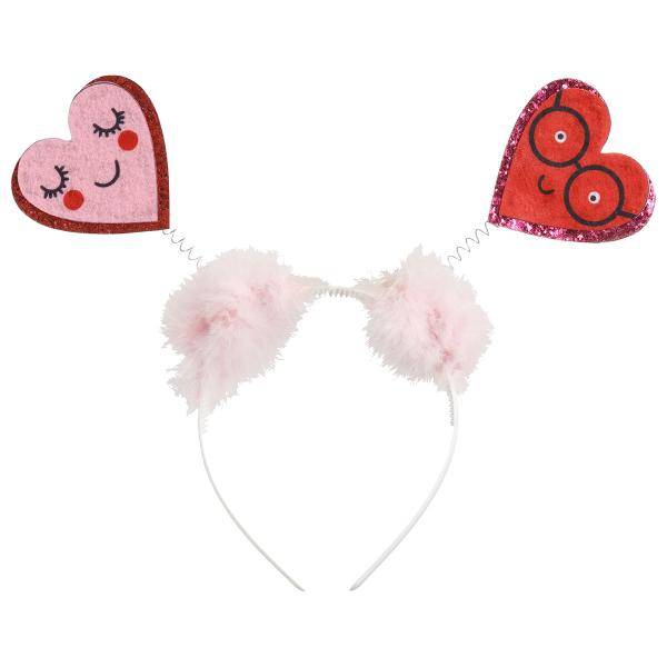Få en romantisk stil til valentinsdag med en charmerende hårbøjle. Denne hårbøjle med hjerter med lyserødt fluff og glitrende hjerter på spiral-fjedre passer perfekt, hvis du leder efter en legesyg hårbøjle til dit outfit.