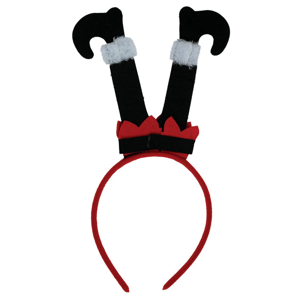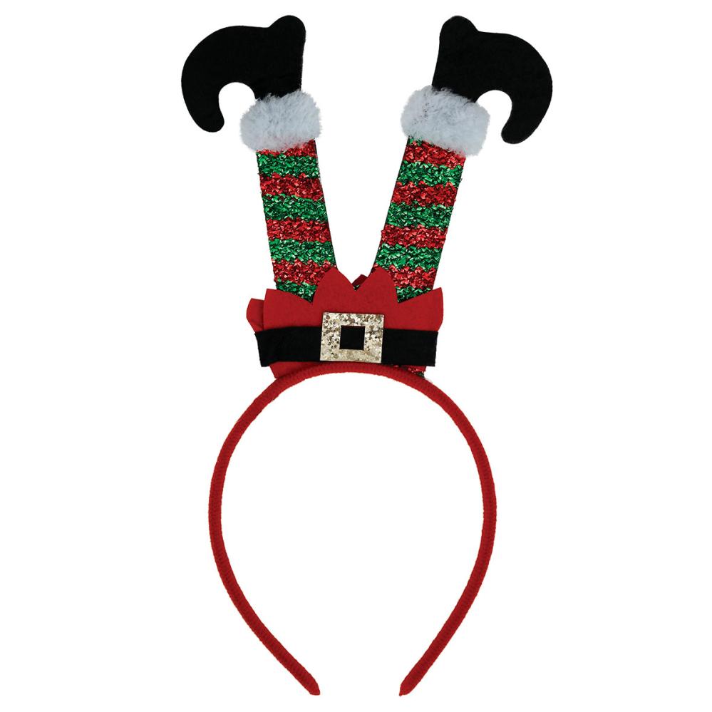 Få alle til at smile med denne sjove julehårbøjle med nisseben der stikker op! Perfekt som hårbøjle til jul, som festlig juleaccessory eller som nissetilbehør til udklædning med ekstra glitrende julemotiv.
