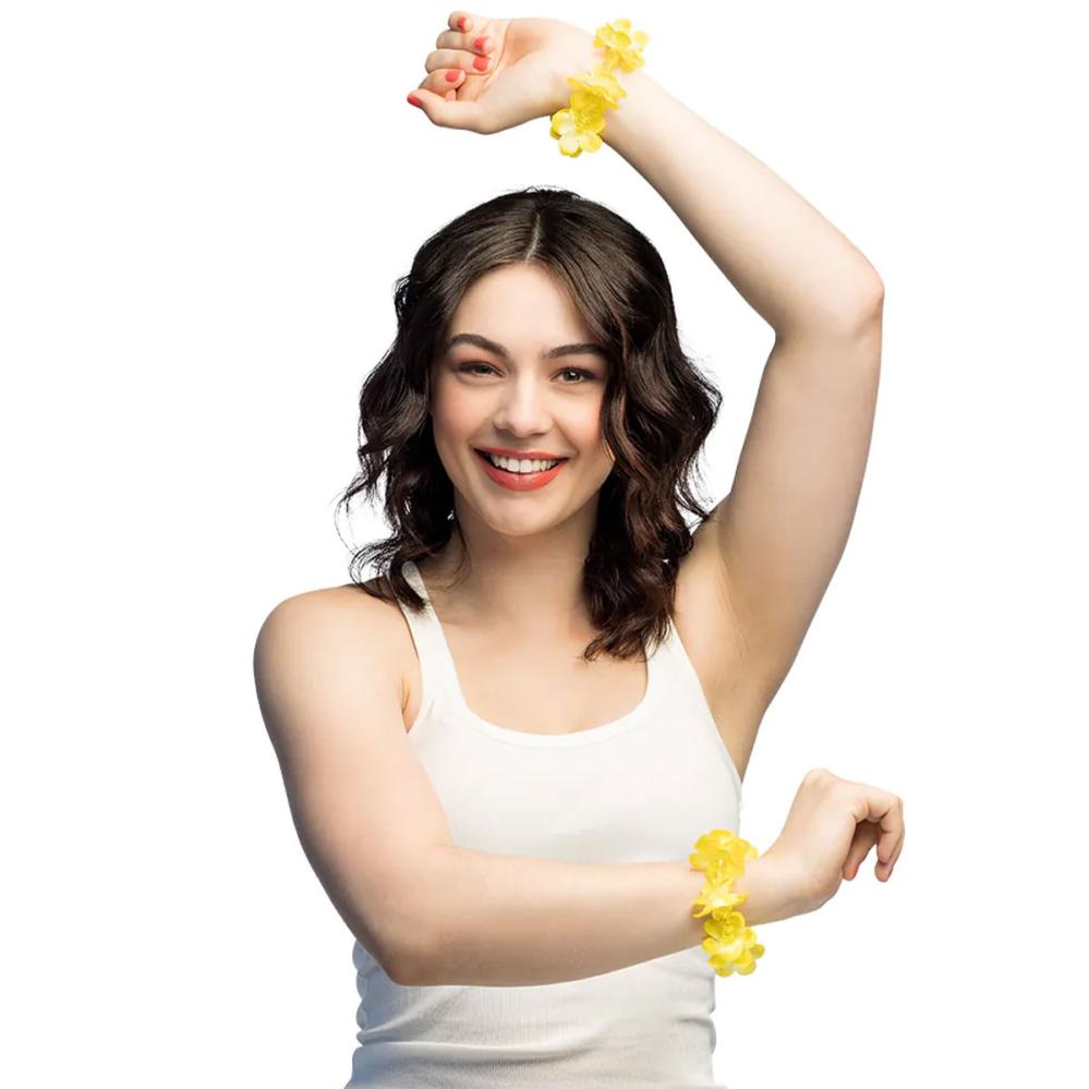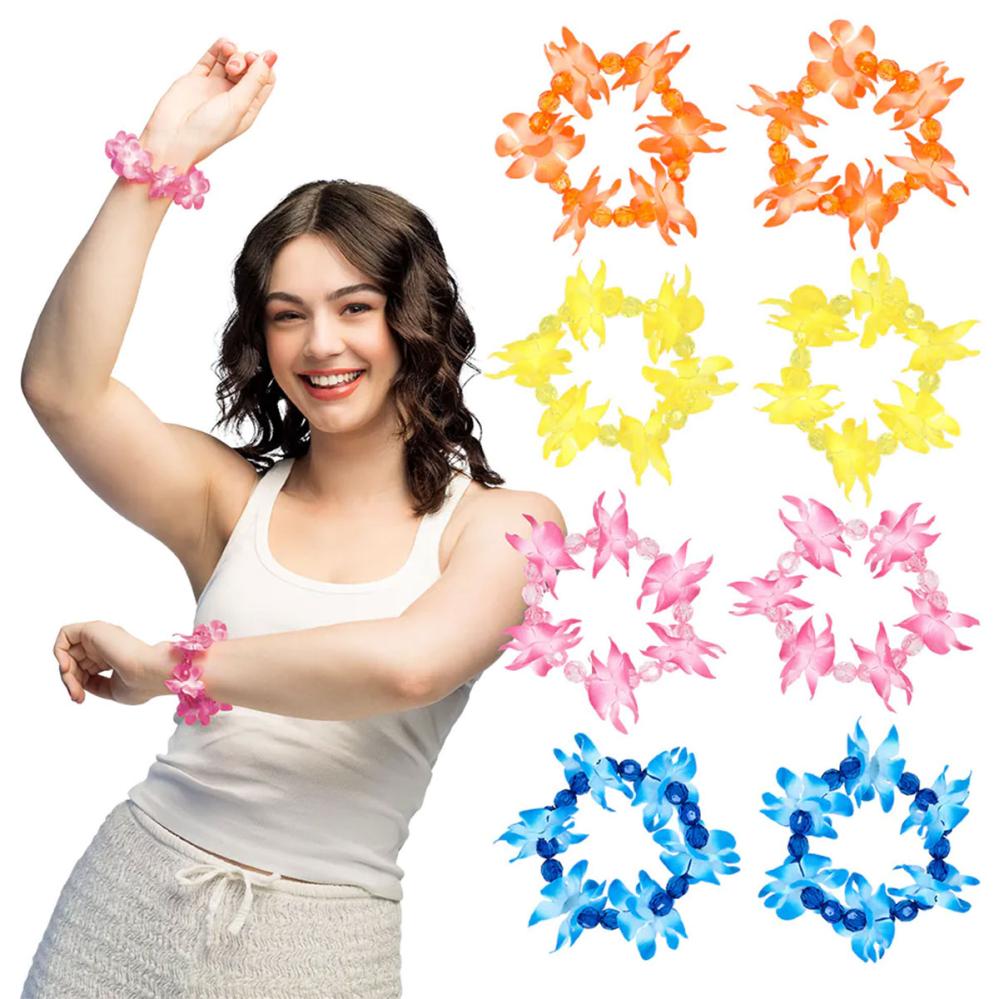 Et blomsterarmbånd passer til stranden, festen og temaaftener og har elastisk tråd, som sidder behageligt og gør det let at bære det hele dagen. Dette armbånd giver en følelse af Hawaii og bliver et farverigt indslag i løbet af sommeren.