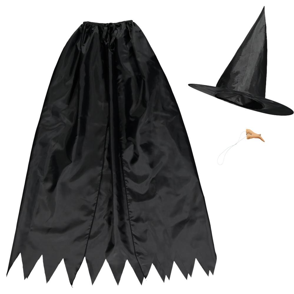 Komplet tilbehørssæt til hekseudklædning, der giver en uhyggeligt troværdig forvandling. Sættet indeholder kappe, hat og en krum næse, som giver din hekseudklædning det lille ekstra. Passer perfekt blandt dit Halloweentilbehør.