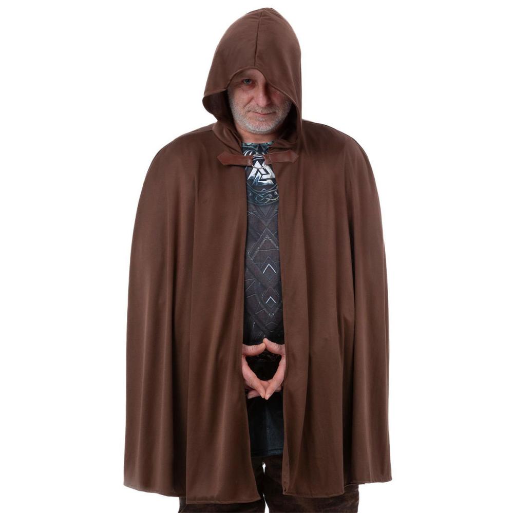 Fuldfør dit middelalderlige outfit med denne cape, en stilren brun kappe med hætte som giver en autentisk fornemmelse til ethvert rollespil. Dette er en ideel middelalderlig udklædningskappe til fantasy- og historiske arrangementer.