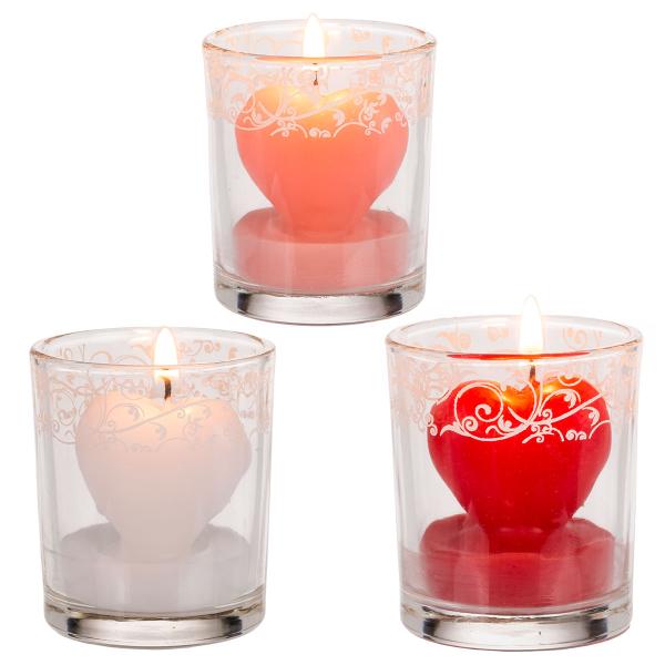 Hjertelys i Dekorativt Glas omfatter et hjerteformet lys i et glas med en hvid, dekorativ mønstring øverst. Lyset findes i farverne rød, lyserød og hvid, men det sælges usorteret og stykvis, så det bliver en overraskelse, hvilken farve du får.