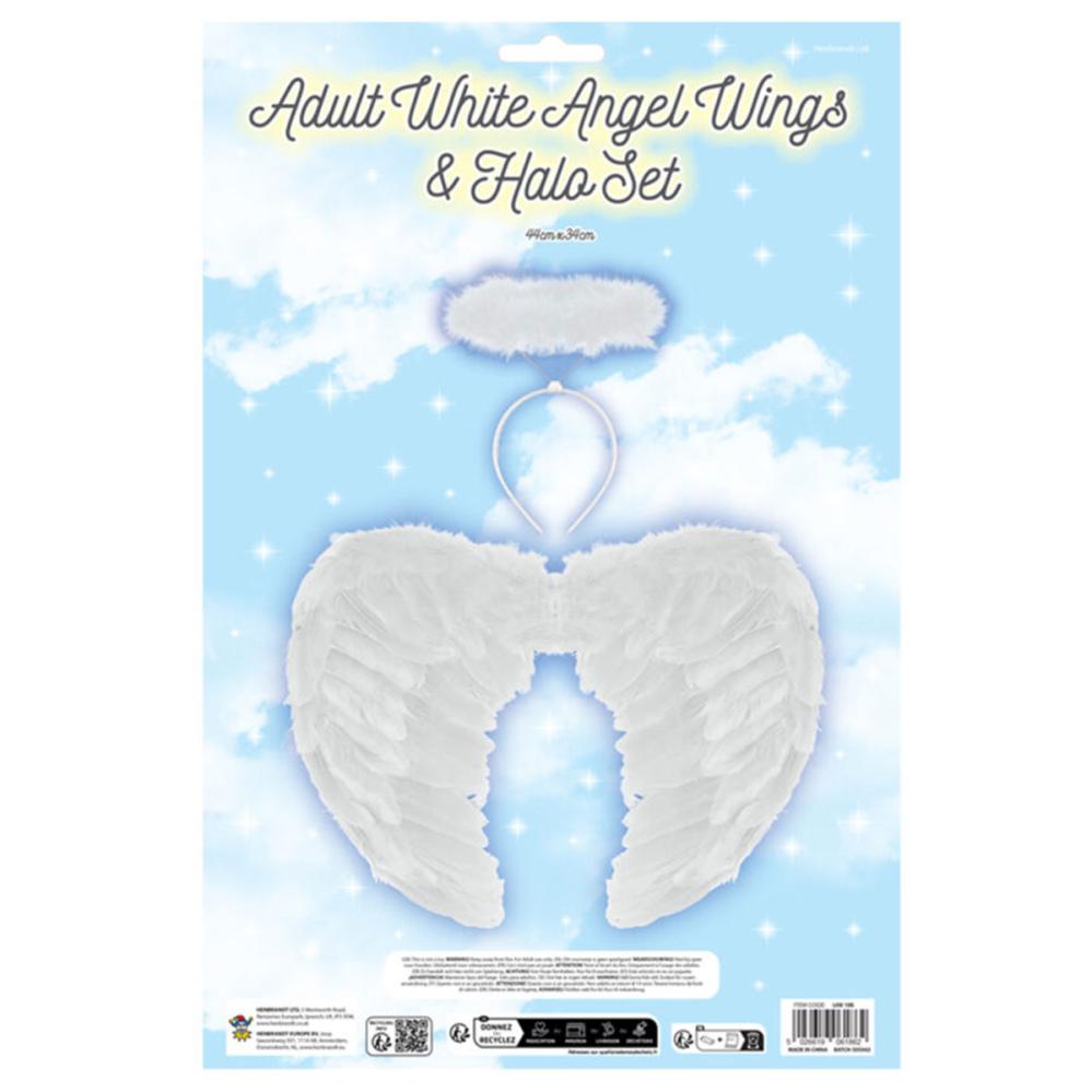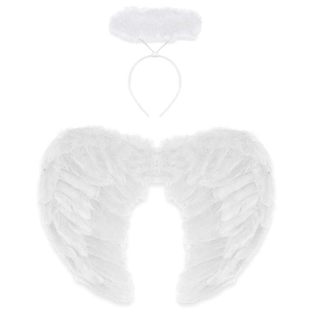 Forvandl dig til en eventyrlig skabning til Halloween med disse hvide englevinger. De er perfekte til englemaskerade eller som Halloweenudklædning, komplet med en fluffy glorie for ekstra glans.
