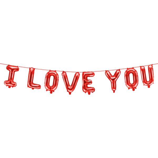I Love You Bogstavballoner Rød omfatter 8 stk røde bogstavballoner af folie, der danner teksten "I Love You". Ballonerne er ca. 40 cm store og kommer også med en 3 meter lang ballonsnor i matchende rød. De har selvforseglende ventil og fyldes med luft, før de trækkes på den medfølgende ballonsnor.