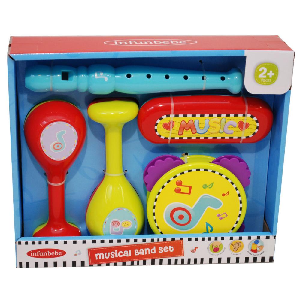 Dette instrumentsæt til børn indeholder fem farverige musikinstrumenter, inklusive mundharmonika, maracas, fløjte og tamburin. Perfekt til små musikere, der vil udforske lyde og rytmer på en sjov måde. Skab dejlige melodier og udvikl taktfølelsen.