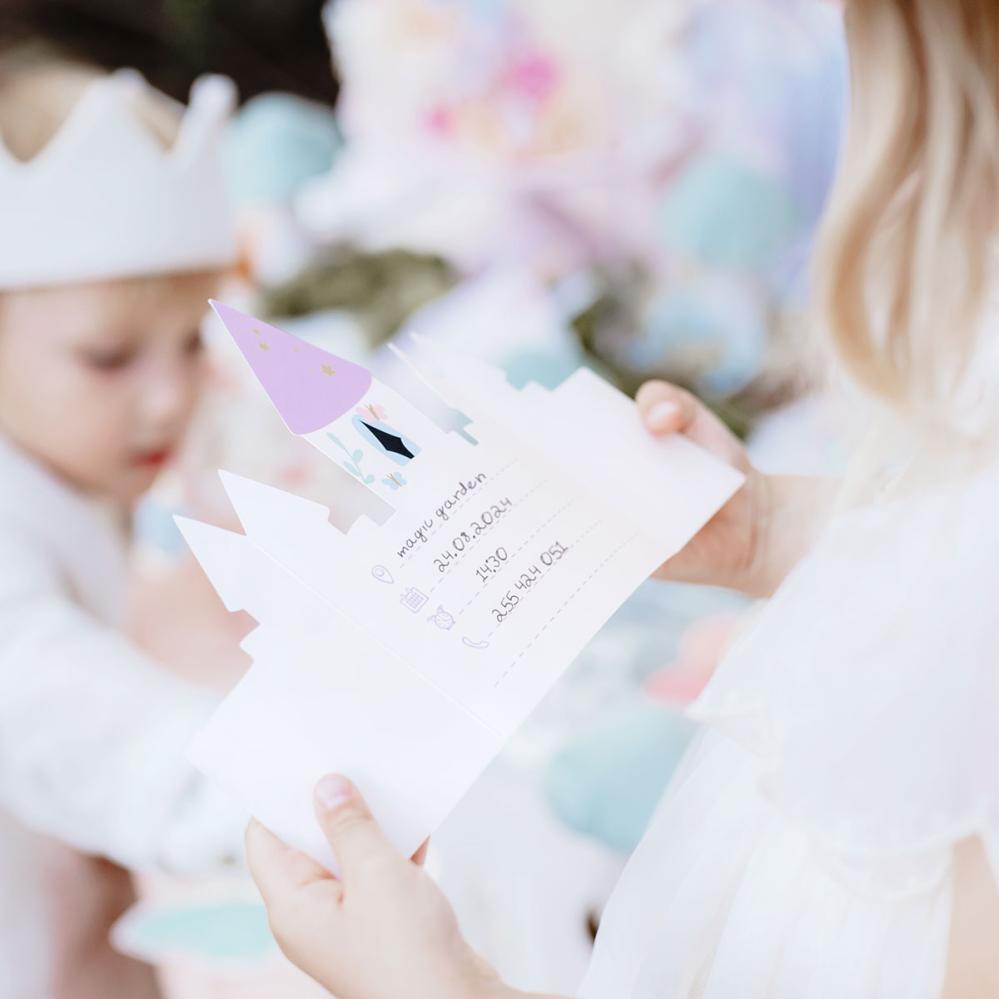 Til en prinsessefest giver et invitationskort med slot en festlig indledning. At vælge en invitation til prins og prinsessefest skaber den rette stemning op til fejringen. Med et tydeligt tema bliver din prinsessefest perfekt. Derudover giver dette prinsessetema din fest ekstra stemning.