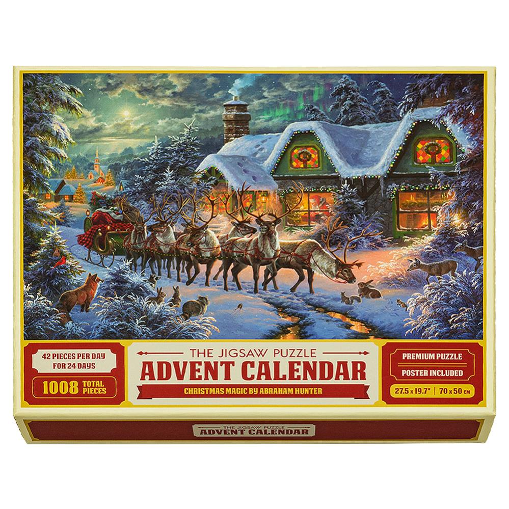 Julekalender Puslespil omfatter en adventskalender bestående af små nummererede æsker fyldt med puslespilsbrikker, som dag for dag samles til et større puslespil. En æske åbnes hver dag fra 1. december frem til juleaften den 24. december. Hver æske indeholder 42 brikker og er en del af et 1008-brikkers puslespil med et julemotiv i form af en snedækket verden med rensdyr og skovdyr foran et oplyst hus. Det store puslespil samles på juleaften. Lim puslespillet sammen eller læg puslespilsbrikkerne tilbage i deres æsker for at bruge igen næste år.