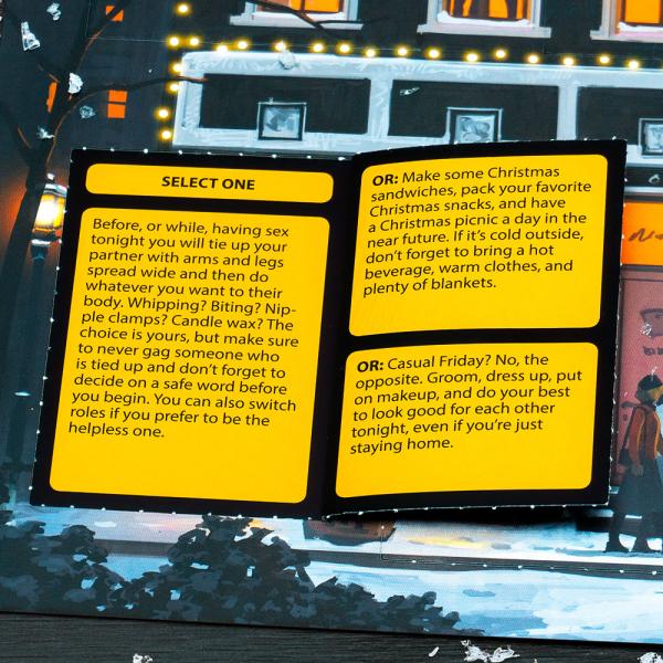 - Adventskalender med 24 låger med modige og erotiske aktiviteter.
