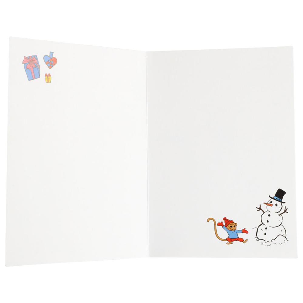 Julekort Pippi Langstrømpe er et dobbeltfoldet julekort med et smukt julemotiv med Pippi Langstrømpe i klassisk stil og teksten "GOD JUL". Indersiden prydes af julegaver på den ene side og afbildninger af Hr. Nilsson og en snemand på den anden. Kortet leveres sammen med en hvid kuvert.