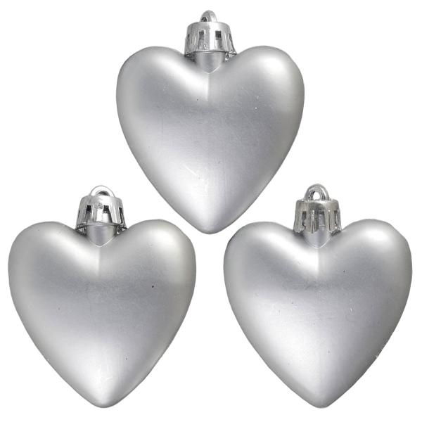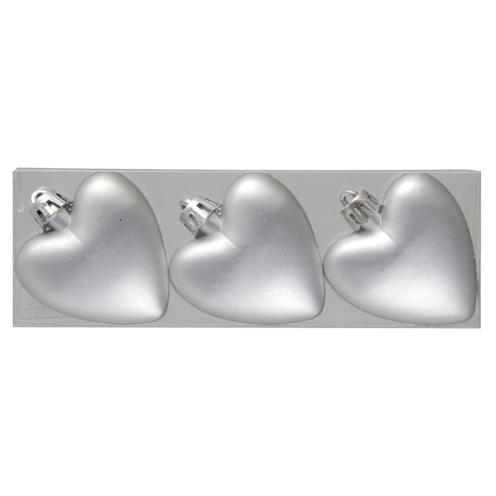 Juletræspynt Sølv Hjerte 3-pak indeholder tre hjerteformede juletræspynt i sølvfarvet plast.