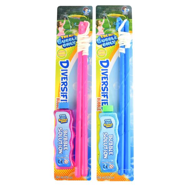 Kæmpe Sæbebobler består af stave og reb, som du laver forskellige store ringe med, afhængigt af hvor store sæbebobler du vil lave. En guide medfølger på emballagen. 354 milliliter sæbeboblevæske medfølger. Findes i forskellige farver, hvilken du får, bliver en overraskelse. Sælges stykvis.