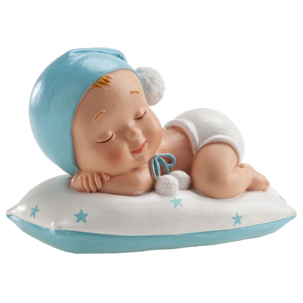 Gør dåbskagen ekstra mindeværdig med en kagedekoration til dåb i form af en sovende dreng med lyseblå detaljer. Denne kagefigur er perfekt til dåb, en smuk dekoration som forhøjer hver dåbskage.