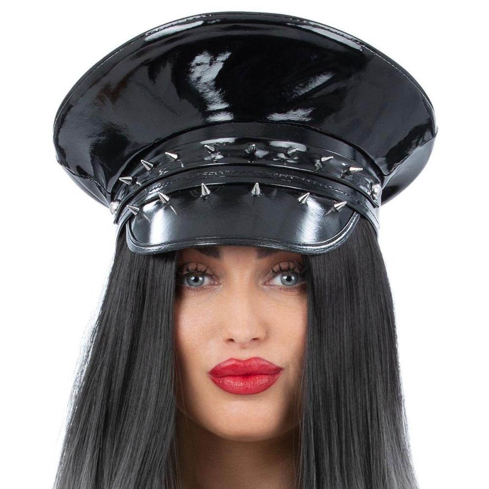 Sæt stilen med en sort kaptajnshat som udstråler attitude. Denne festivalhat er en smart hat med nitter og blank finish som tiltrækker blikke uanset om du står på scenen eller danser foran den.