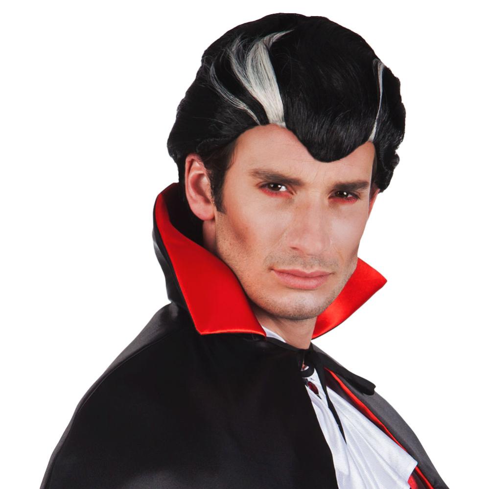 Klassisk Vampyr Paryk omfatter en kort, sort paryk med grå striber. Parykken passer til voksne og er lavet af polyester.