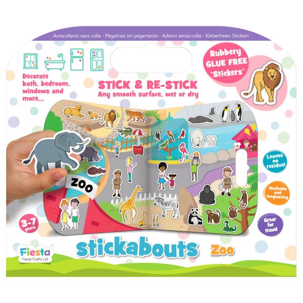 Sjove genanvendelige klistermærker og tilhørende bog i dejligt zootema! Sæt de søde dyreklistermærker ind i bogen og flyt dem rundt præcis som du vil. Klistermærkerne kan også bruges på andre glatte overflader som f.eks. vinduer, døre og badekar. Virkelig sjove klistermærker til alle legesyge børn.