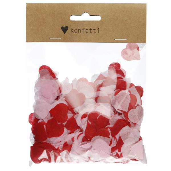 Konfetti Hjerter Rød & Lyserød omfatter en pose med hjerteformet konfetti i lyserød og rød farve.