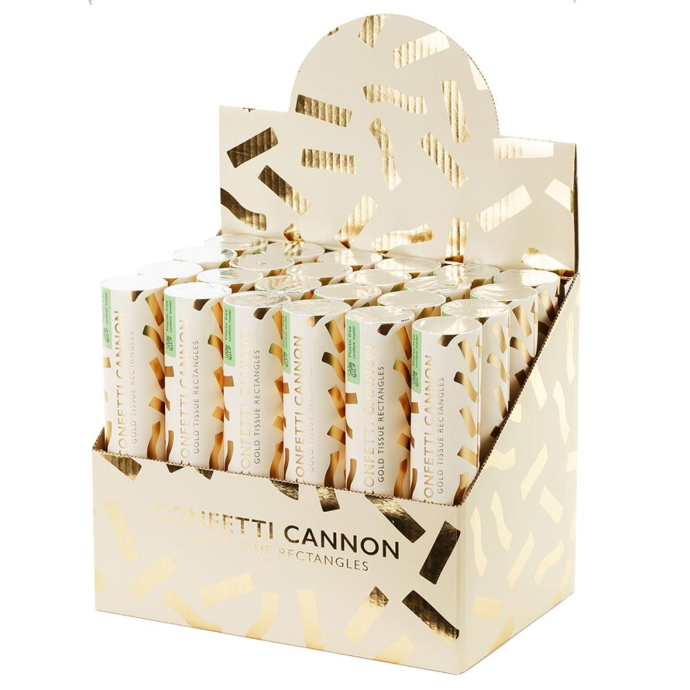 Info om Konfettikanon Rektangulær Guld 20 cm: