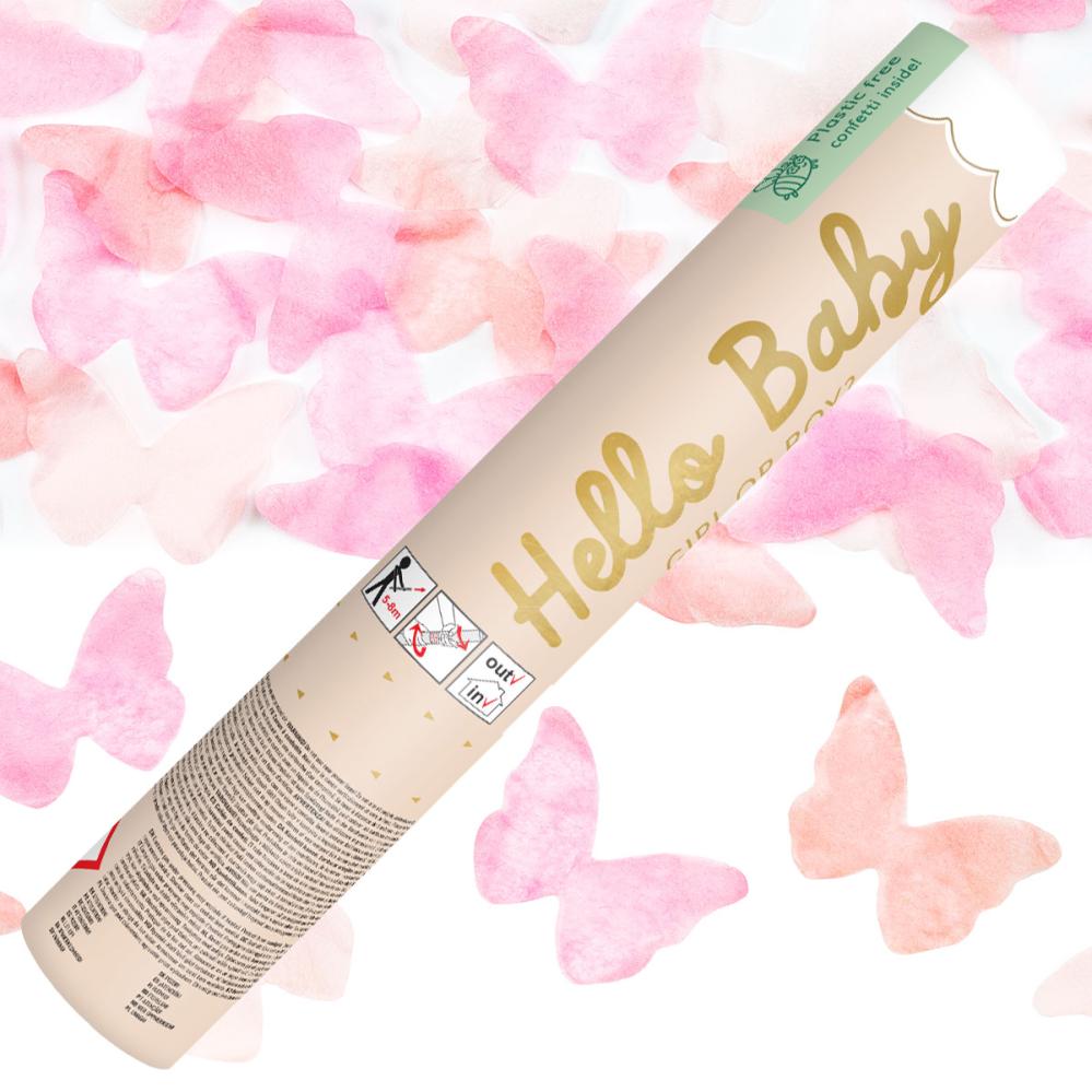 Når denne konfettikanon bruges spredes sommerfugle af lyserød konfetti i luften og skaber en legende effekt til festen. Da konfettikanonen har sommerfugle som tema bidrager den altid til stemningen. Denne sommerfuglekonfetti lyser op ved alle fejringer.