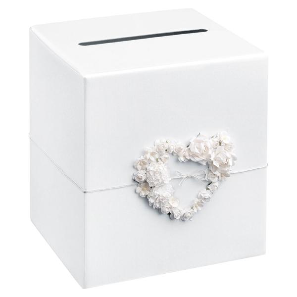 Festlig kortæske med smukt hjerte af små roser, der bliver det perfekte tilbehør til dit bryllup. I denne fine kortæske kan bryllupsgæsterne nemt lægge gratulationskort, gavekort, sjove billeder, små hilsener og andet sjovt. Denne kortæske er således et fremragende valg både for dig, der ønsker at samle alle kort på en stilfuld måde, og for dig, der er på udkig efter et sjovt alternativ til en gæstebog.