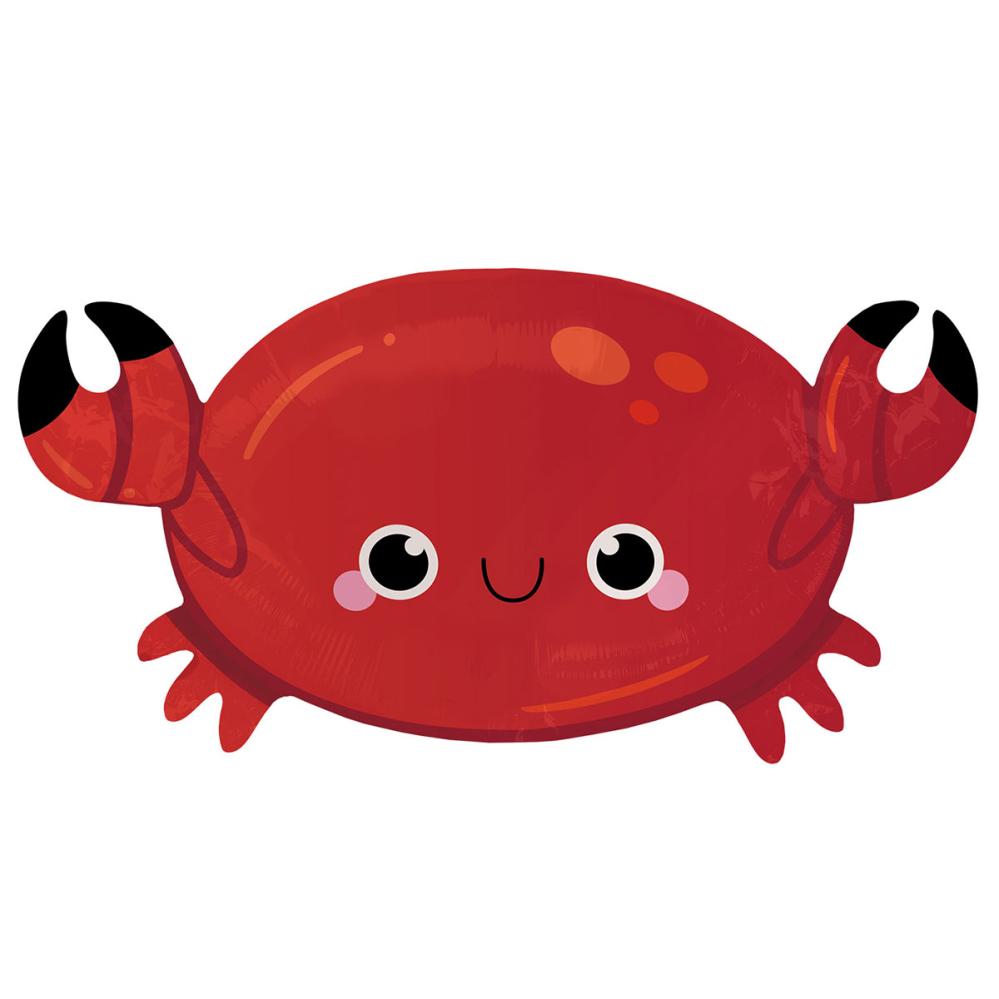 Krabbe Folieballon Rød omfatter en folieballon i form af en glad rød krabbe.