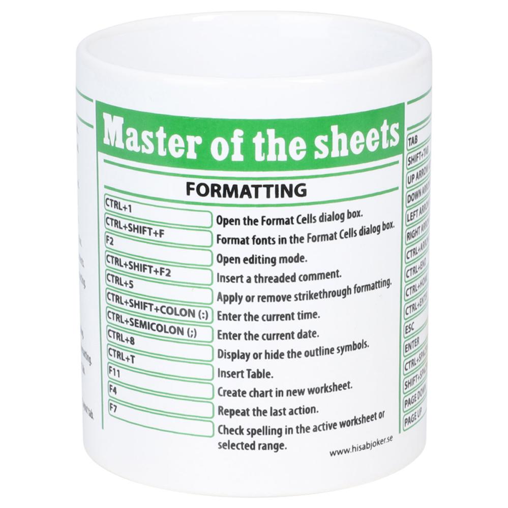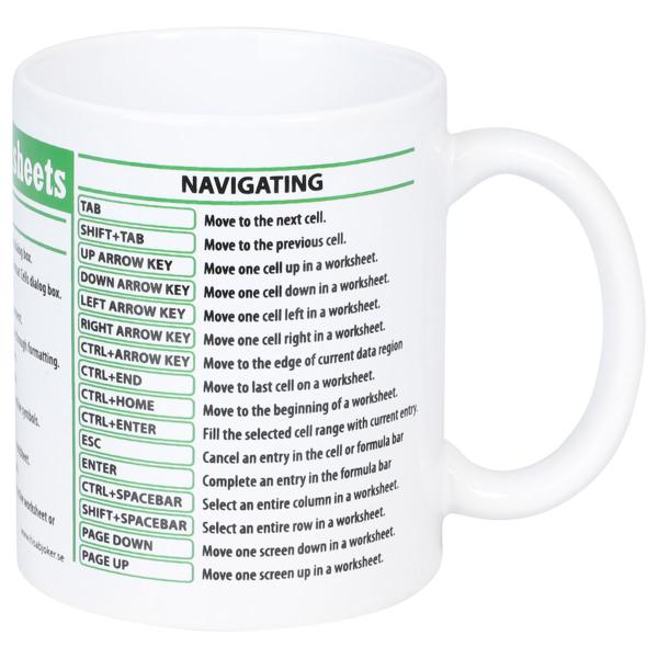 Perfekt som krus til kontoret, når du vil holde styr på dagen med et hurtigt overblik over smarte genveje. Det er et Excel-kaffekrus, der får kollegerne til at smile, og en sjov kaffekop, der gør pauserne lidt mere produktive.