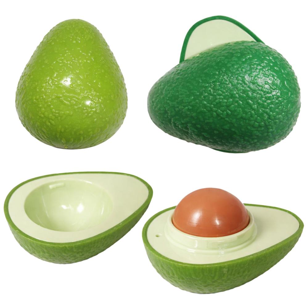 Læbepomade Avocado 7 g er en kugleformet læbepomade med mineralvoks og bivoks i en grøn avocadoformet plastemballage.