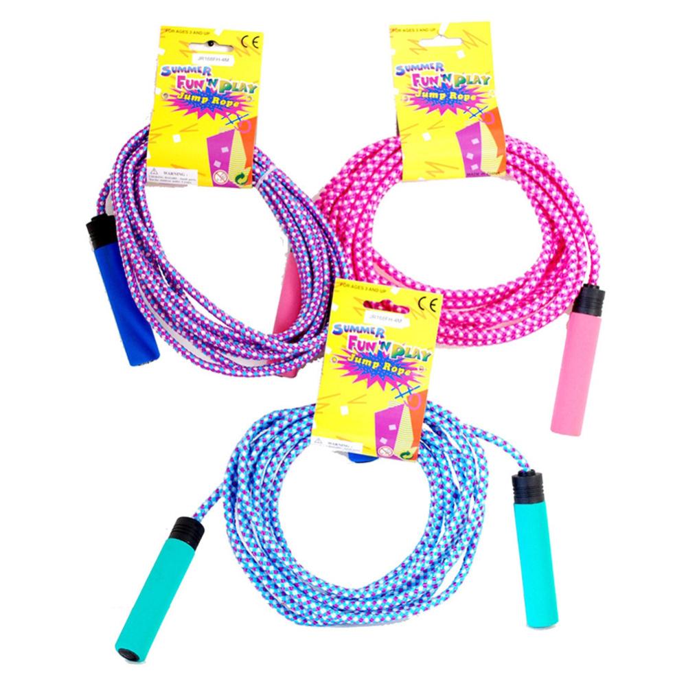 Langt Sjippetov 4 meter omfatter et 4 meter langt sjippetov med bløde håndtag. Sjippetovet er lavet af polyester og fås i flere forskellige farver, hvilken farve du får, er tilfældigt.