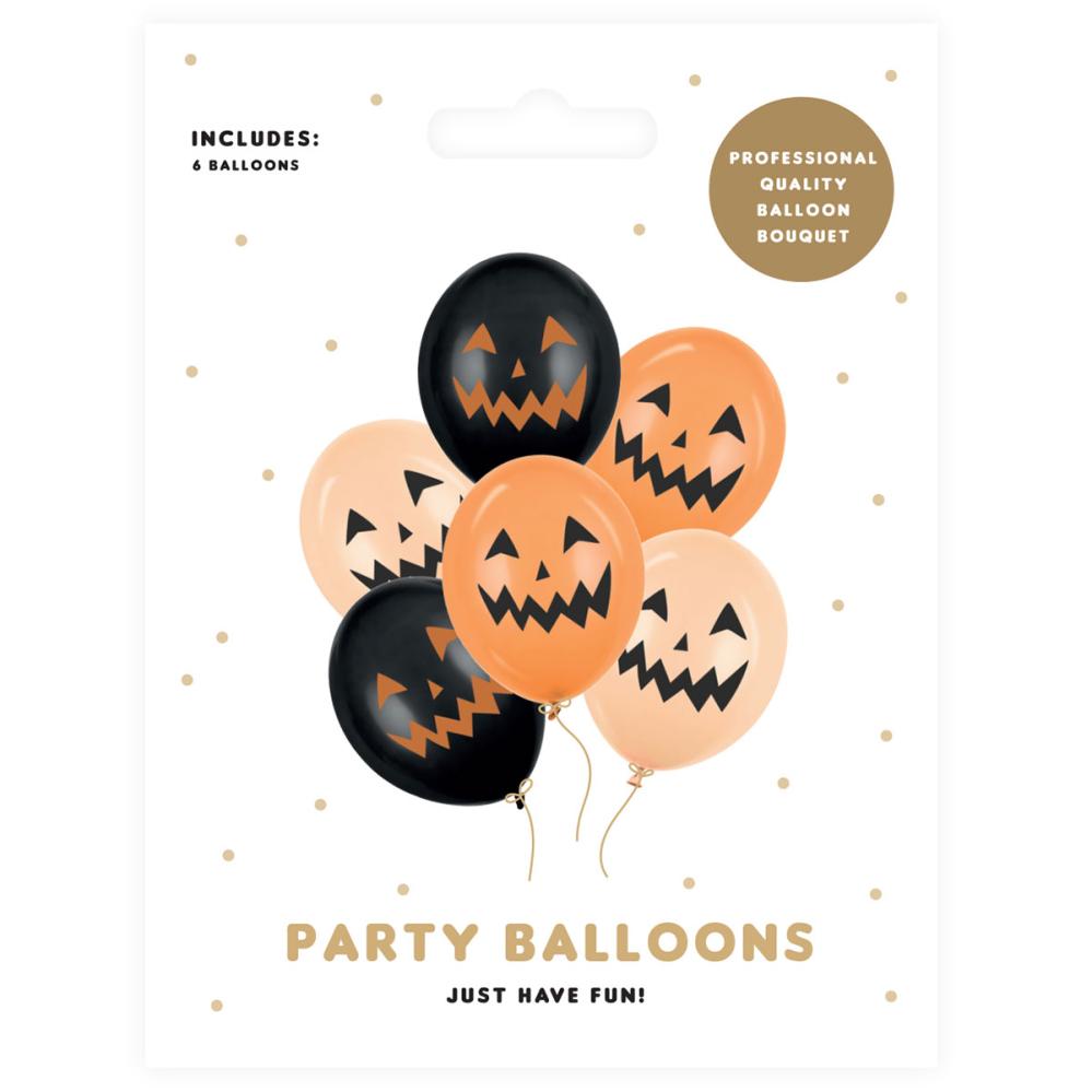 Latexballoner Græskar Blandede Farver indeholder en blanding af latexballoner med halloweengræskar i sort, orange og abrikos.