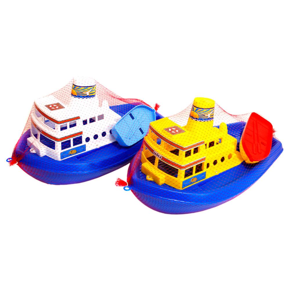 Legetøjsbåd med Redningsbåd omfatter en stor plastbåd med en lille redningsbåd. Den store båd er 33 cm lang og 20 cm høj, og den lille båd er 13 cm lang og 6 cm bred.