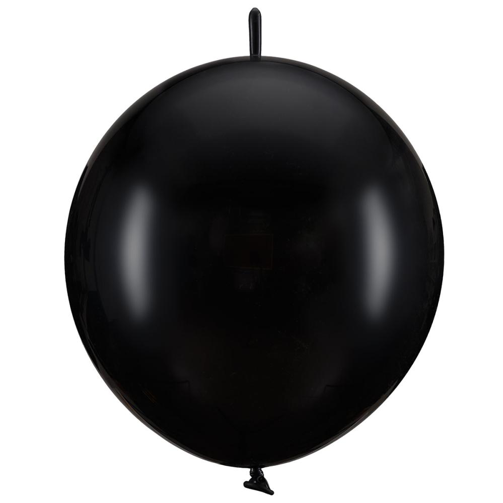 Link Balloner Sort Pastel 20-pak består af tyve linkende latexballoner i en pasteltone af sort, som bindes sammen for at skabe en dekoration.